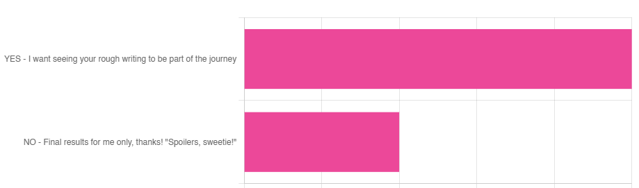 Those of you who have been grumbling about how often Blood Depths has been put off will be grumpy with me, I understand. However, I cannot deny the results of the last newsletter’s poll, wherein those of you who want to see rough snippets were very vocal and undeniable.
